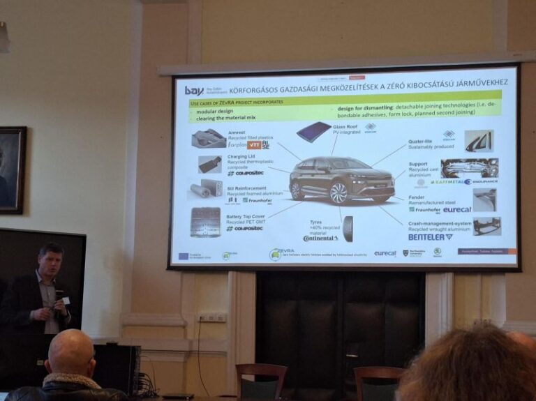Bay Zoltán Nonprofit Ltd. (BZN) contributes to ZEvRA by conducting the environmental Life Cycle Assessment (LCA) and coordinating the Social Life Cycle Assessment (S-LCA) and Life Cycle Costing (LCC) activities, providing a robust sustainability baseline for evaluating the project’s innovations. As a Hungarian applied research centre with decades of experience in EU framework programmes, BZN specialises in applied research, translating scientific research results into analytical insights that support real, industry practice and decision-making. Within ZEvRA, BZN is responsible to carrys out a comprehensive Life Cycle Thinking assessment of the business-as-usual reference vehicle, covering environmental, social, and economic dimensions. The environmental LCA identifies the most relevant impact categories and life cycle stages, highlighting the dominant role of raw material extraction, processing, and electricity use during the vehicle’s life cycle. Complementary social LCA work focuses on key social risks across the value chain, with particular attention to raw material sourcing and impacts on local communities and workers, while LCC focuses on the environmental related cost consequences of the analysed scenarios. These assessments provide essential benchmarks against which ZEvRA’s circular design and manufacturing solutions can be evaluated. By identifying critical impact hotspots and trade-offs early on, Bay Zoltán’s work supports informed design choices and underlines the importance of improving secondary raw material recovery and use. This evidence-based approach ensures that ZEvRA’s innovations are assessed not only for technical feasibility, but also for their broader environmental and social sustainability.