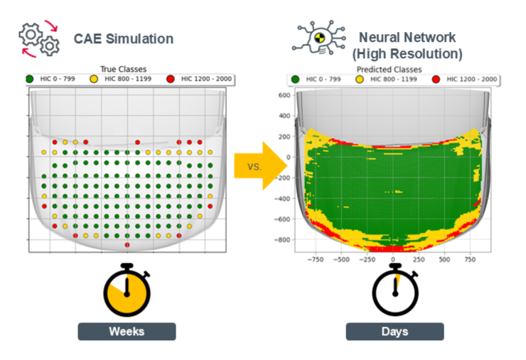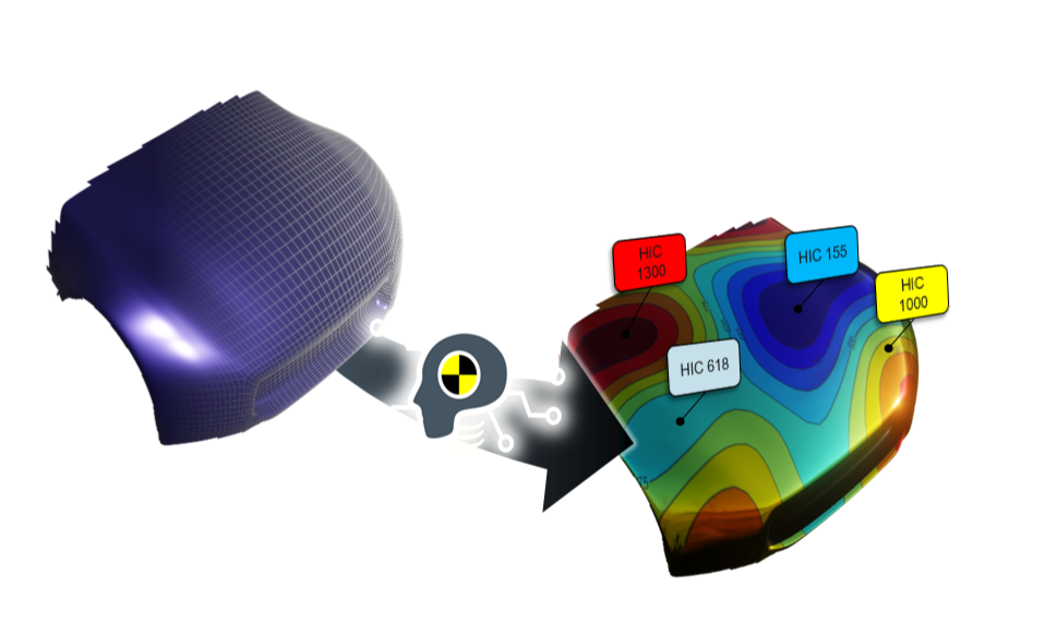 At its core, the tool processes data from Computer-Aided Design (CAD), preparing geometry and material information for AI-driven analysis. Using advanced machine learning models, the tool classifies sheet metal parts according to Head Impact Criteria (HIC), a key safety metric for pedestrian protection. Instead of outputting a single HIC value, the AI assigns values to any predefined point providing rapid feedback on its suitability for reuse in the vehicle’s frontal area with an unreached resolution.